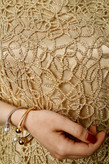 پیراهن گیپور طلایی بژ با بافت خاص، جلوهای ظریف و منحصربهفرد به استایل شما میبخشد. این پیراهن با پارچه گیپور و رنگ خاص بژ طلایی طراحی شده که در عین سادگی، بسیار شیک و چشمنواز است. آستری ساتن فرانسه علاوهبر لطافت بالا، به ایستایی بهتر لباس کمک میکند و حس راحتی را در طول پوشیدن تضمین مینماید. مدل آستین حلقهای آن، انتخابی مناسب برای استایلهای تابستانی و پوششهای رسمی یا نیمهرسمی است. همچنین زیپ مخفی در پشت لباس باعث شده که پوشیدن آن آسانتر و فرم نهایی آن تمیزتر و یکدستتر باشد. این پیراهن انتخابی سبک، لطیف و خوشفرم برای مهمانیها، تولدها و مراسم رسمی یا نیمهرسمی است.