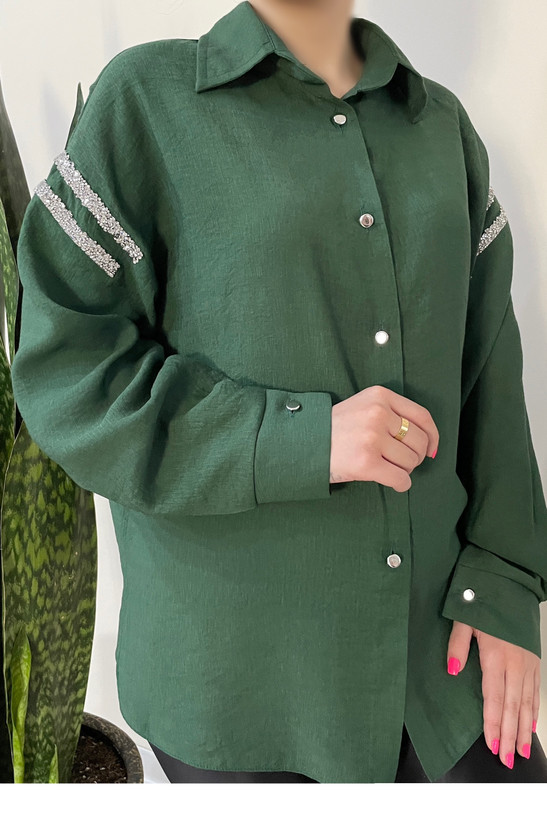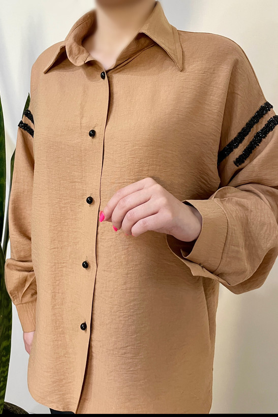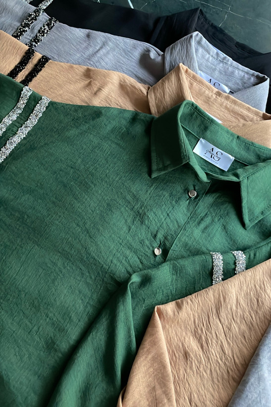 شومیز یقه مردانه با مدل سرشانه افتاده، انتخابی شیک و متفاوت برای استایلهای روزمره و نیمهرسمی است. این شومیز از پارچهی کرسپو تهیه شده که بافتی لطیف و خوشفرم دارد و به خوبی روی بدن مینشیند. در قسمت سرشانه نوار نگین سواروسکی دوخته شده که جلوهای درخشان و خاص به طراحی اضافه کرده است. یقه مردانه نیز حالت کلاسیک و منظمتری به استایل میدهد. این شومیز به راحتی با شلوارهای جین یا پارچهای قابل ست کردن است. انتخابی خاص و راحت برای استایلهای روزمره، نیمهرسمی و دورهمیهای دوستانه.