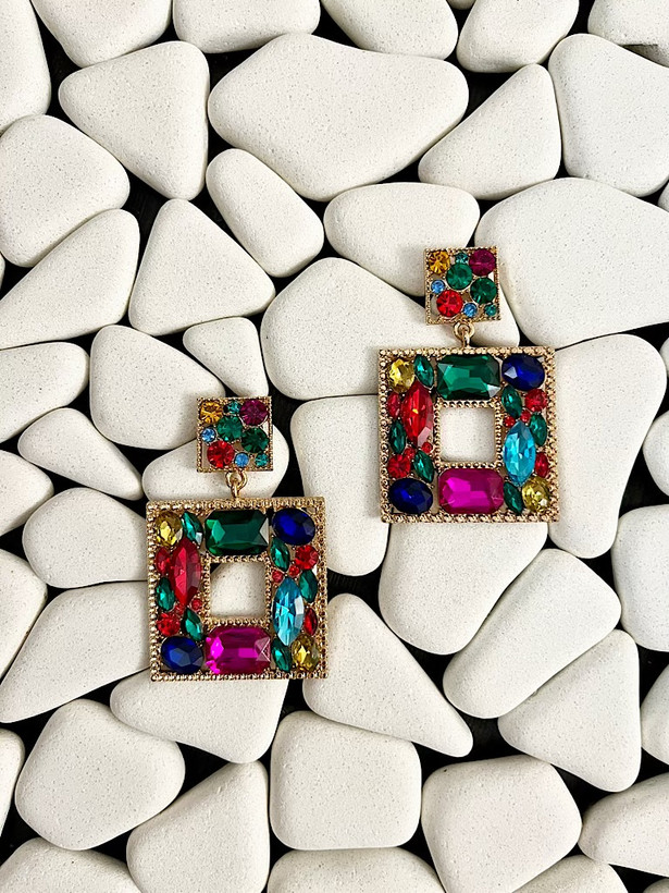 گوشواه جواهری مولتی کالر مربعی کد 1001
