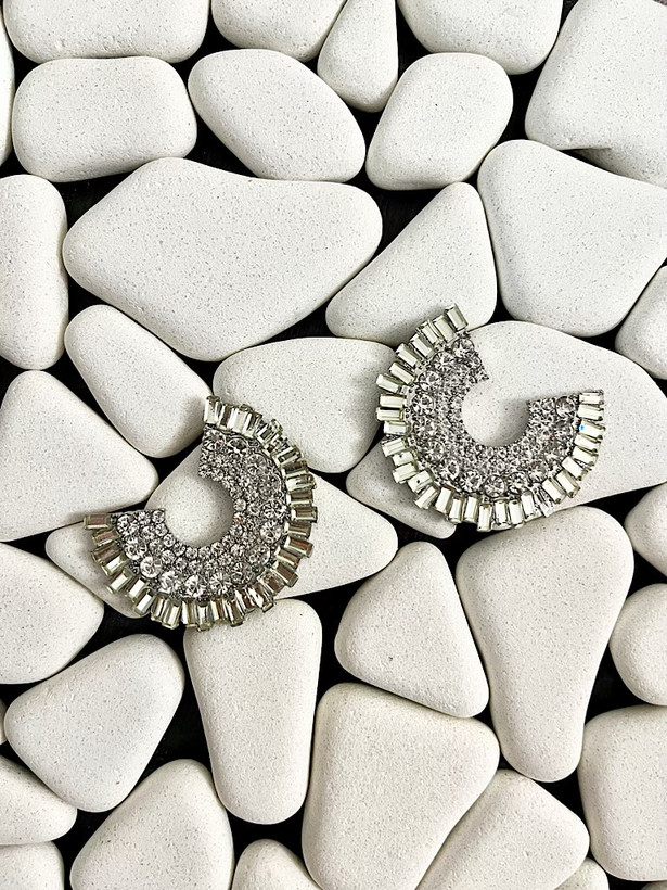 گوشواره جواهری سفید نیم دایره ای کد 1003