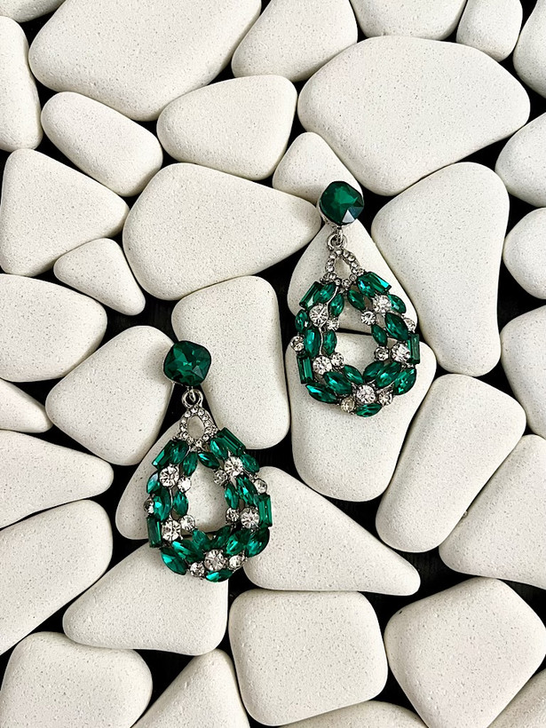 گوشواره جواهری سبز اشکی کد 1005