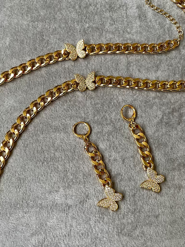 ست گردنبند و دستبند و گوشواره کارتیر پروانه کد 5001