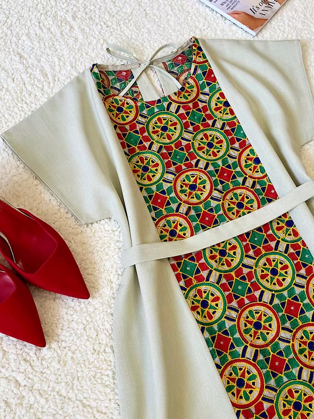 پیراهن یقه گرد کوتاه کرپ شانتون سوزندوزی کد 60007