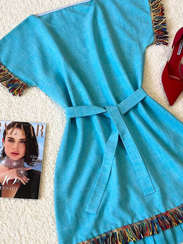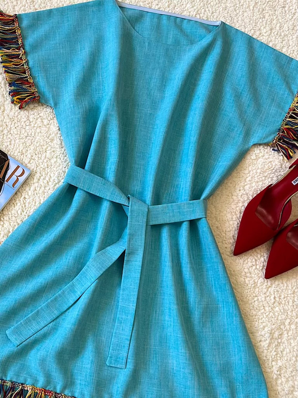 پیراهن میدی کرپ شانتون آبی کد 60008