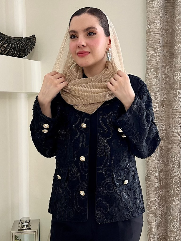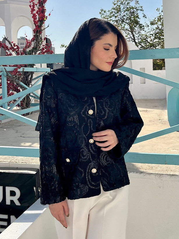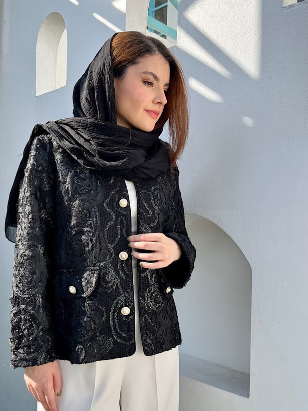 کت مجلسی گیپور قلاب بافی مشکی کد 10012